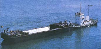 石積み護岸・防波堤やケーソン据付けマウンドに使用する石材の運搬・投入を行う作業船。
